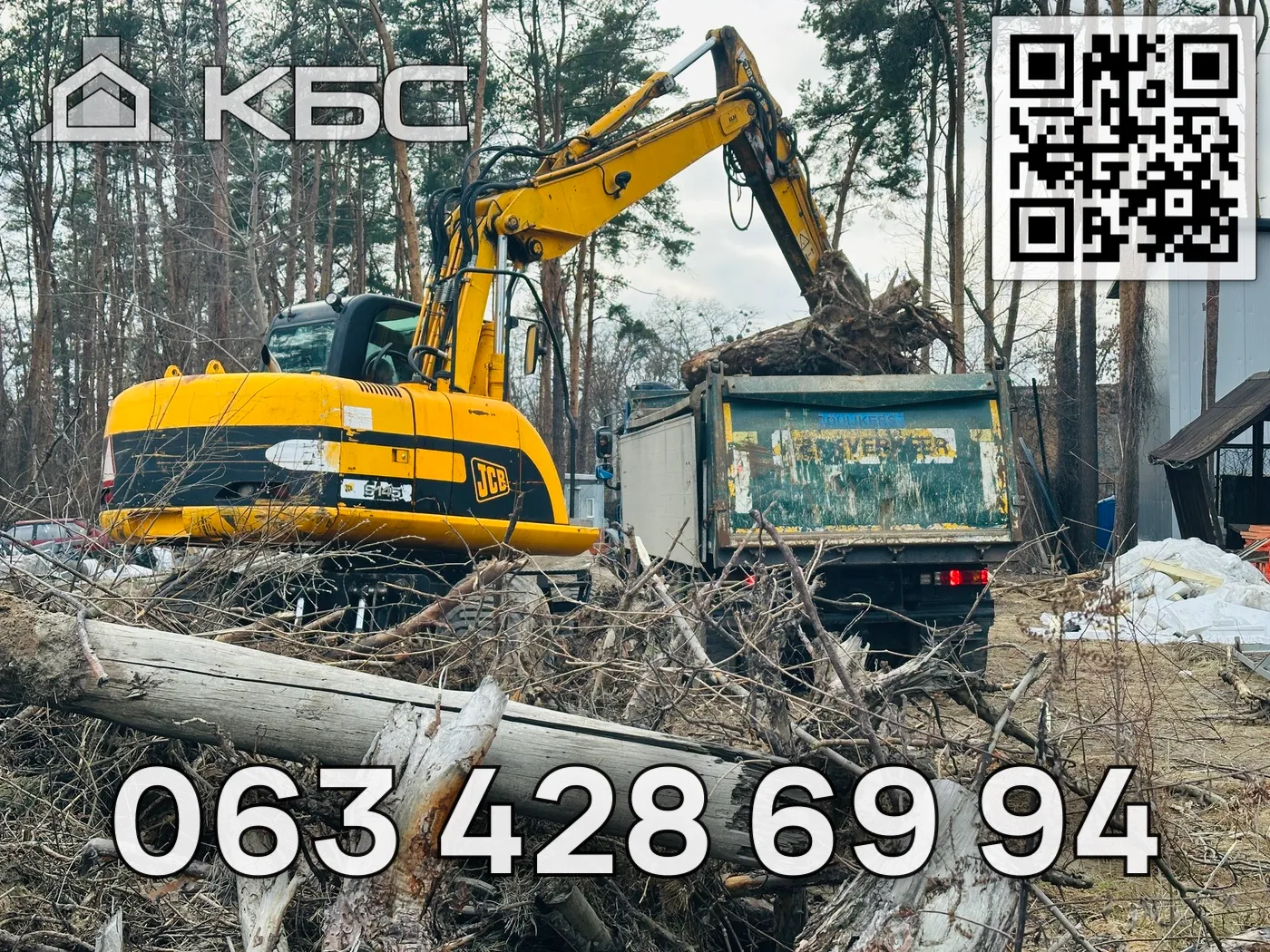 Вывоз строительного мусора самосвалами от 5 до 30 тонн и контейнерами от 12 до 30 м³ в Броварской р-н. Загрузка происходит экскаватором JCB 3 CX или грузчиками.