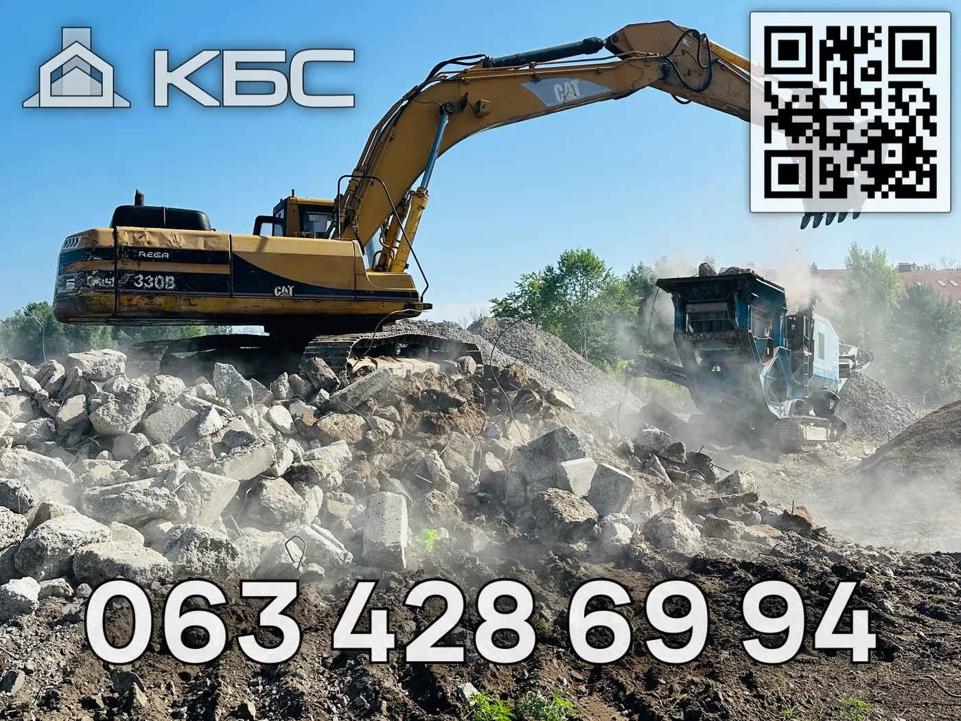 Дробарка надається в оренду з оператором, механіком і помічником. При потребі надаємо екскаватори з гідромолотами та гідроножицями для підготовки бетону під дроблення.